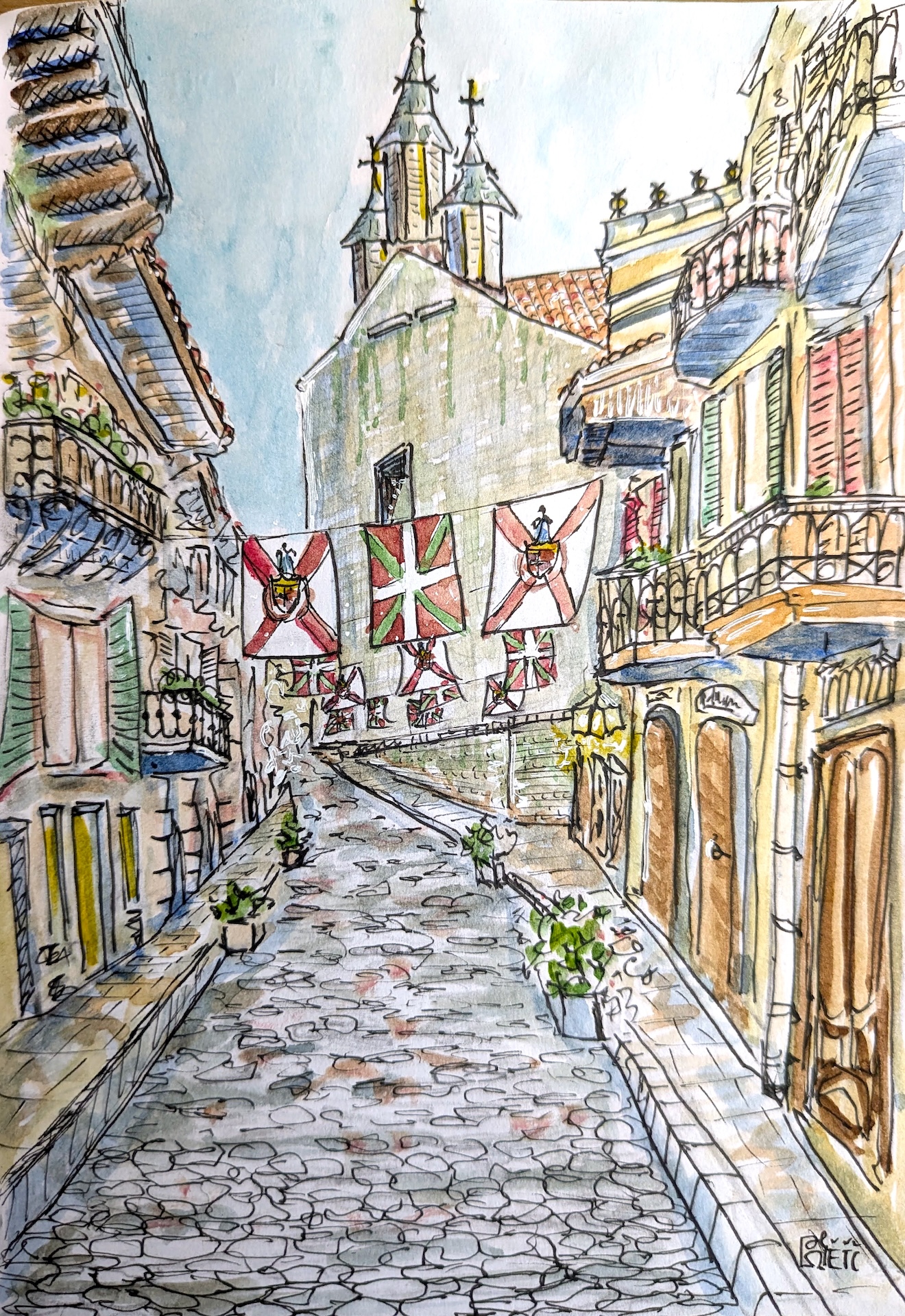 Sketch de Hondarribia, Donostia, España. Acuarela sobre papel.