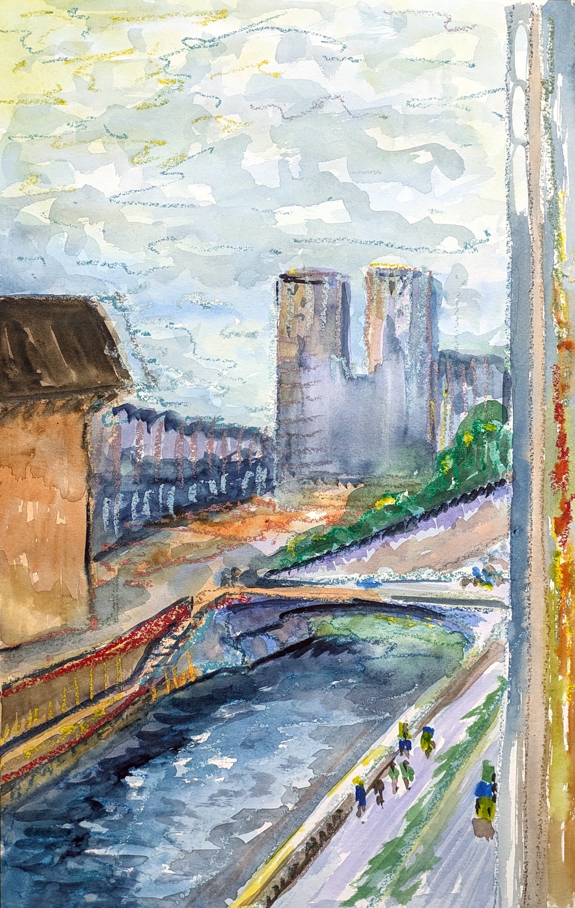 Notre Dame depuis le Pont Saint-Michel. Oleo pastel y acuarela sobre papel.