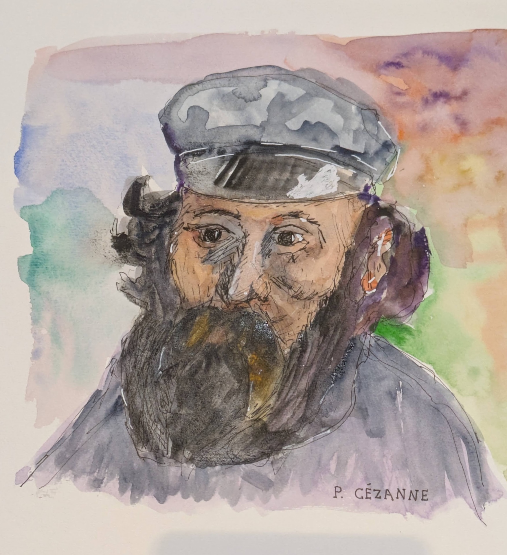 Retrato de Paul Cézanne. Acuarela sobre papel.