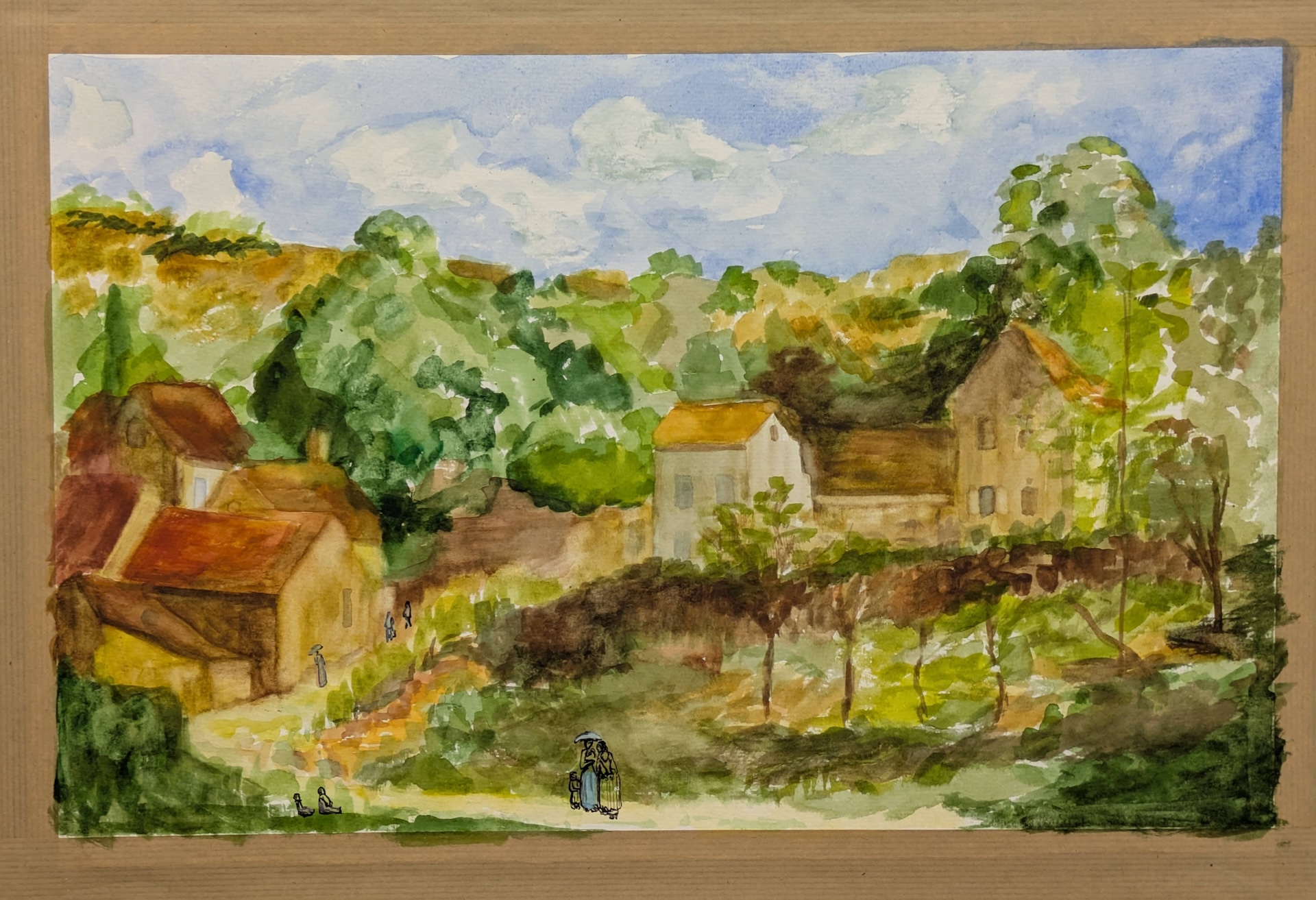 Paisaje de Pontoise, Camille Pissarro. Acuarela sobre papel.