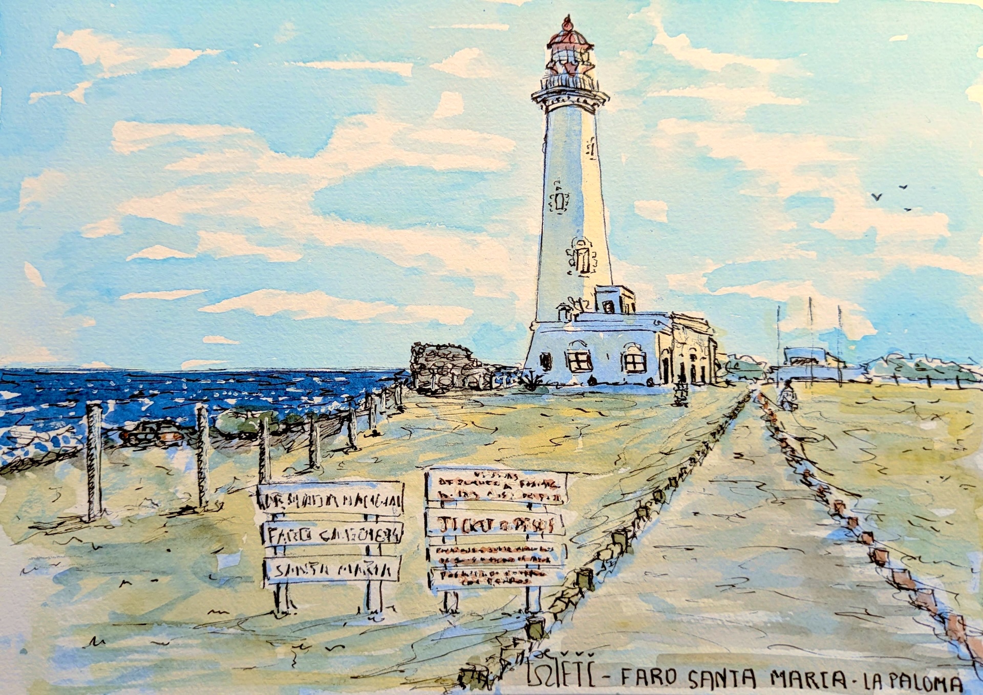 Faro Santa Maria, La Paloma, Uruguay. Acuarela sobre papel.