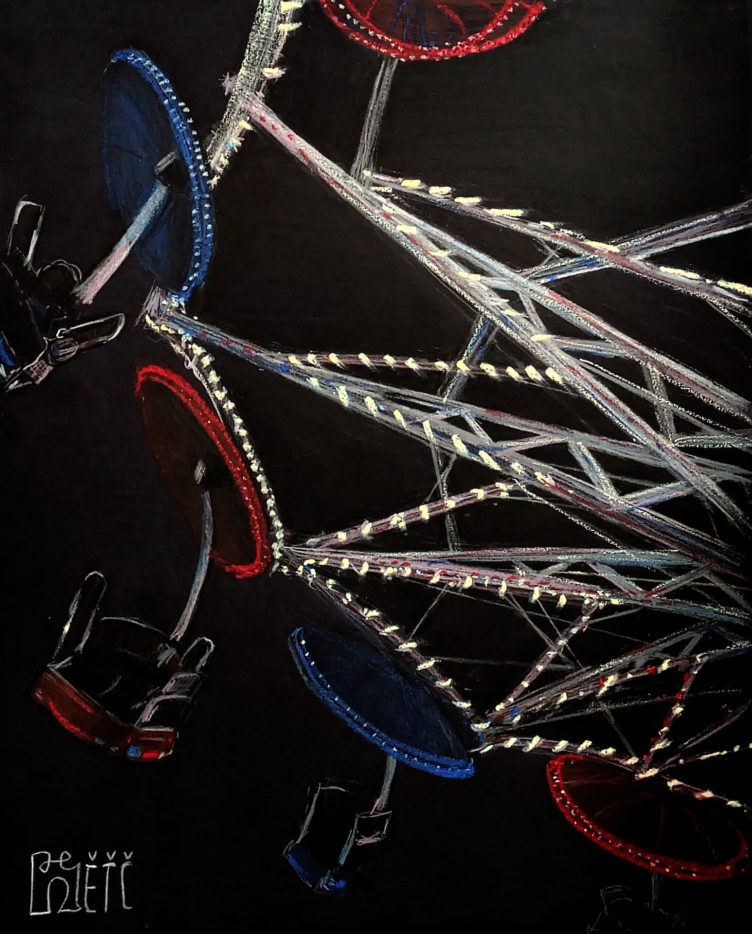 Juegos del parque Rodó, Uruguay. Oleo pastel y lapices de color sobre papel negro.