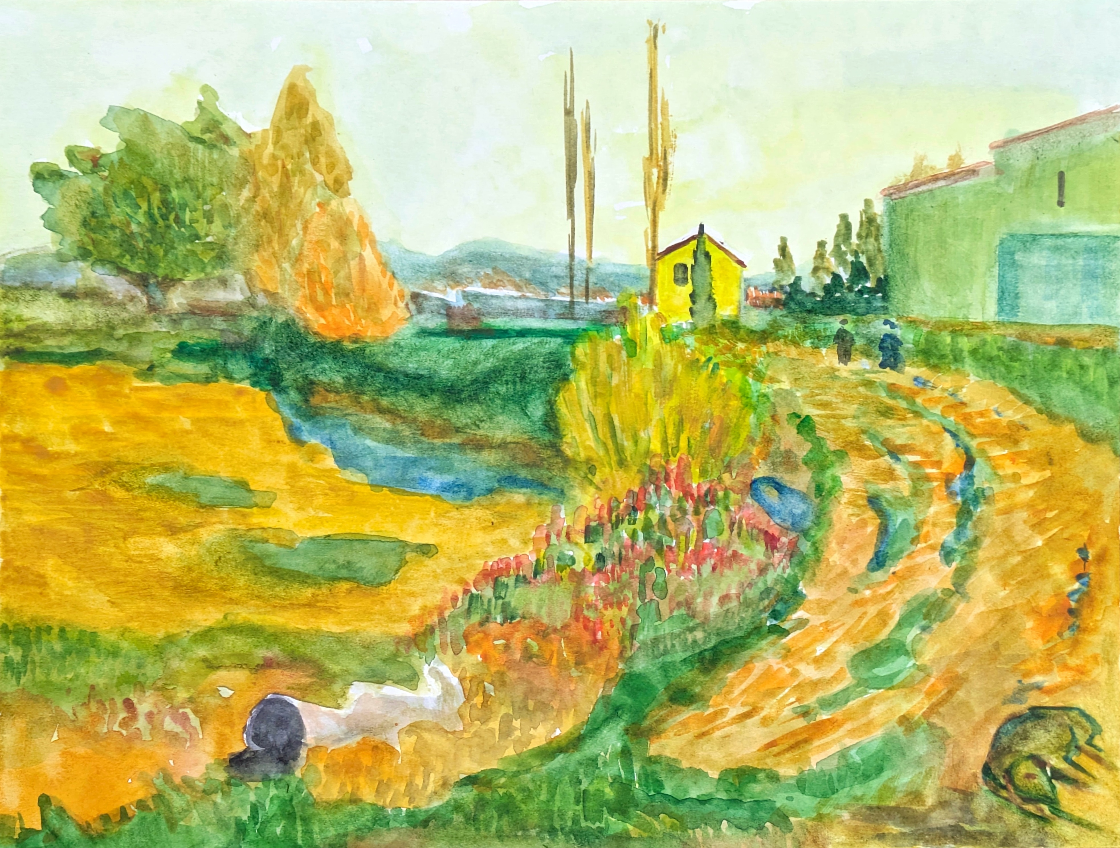 Copia de Paisaje Cerca de Arles de Paul Gauguin. Acuarela sobre papel.
