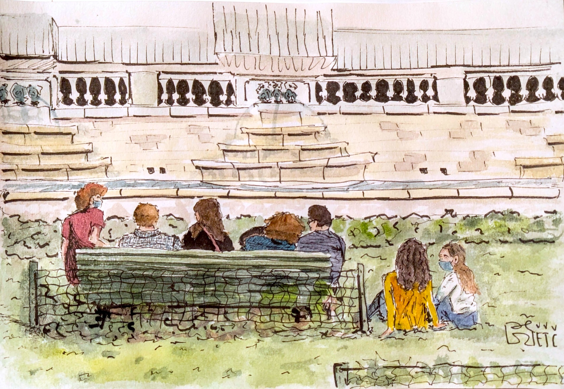 Tarde con amigos en Paris. Acuarela sobre papel.