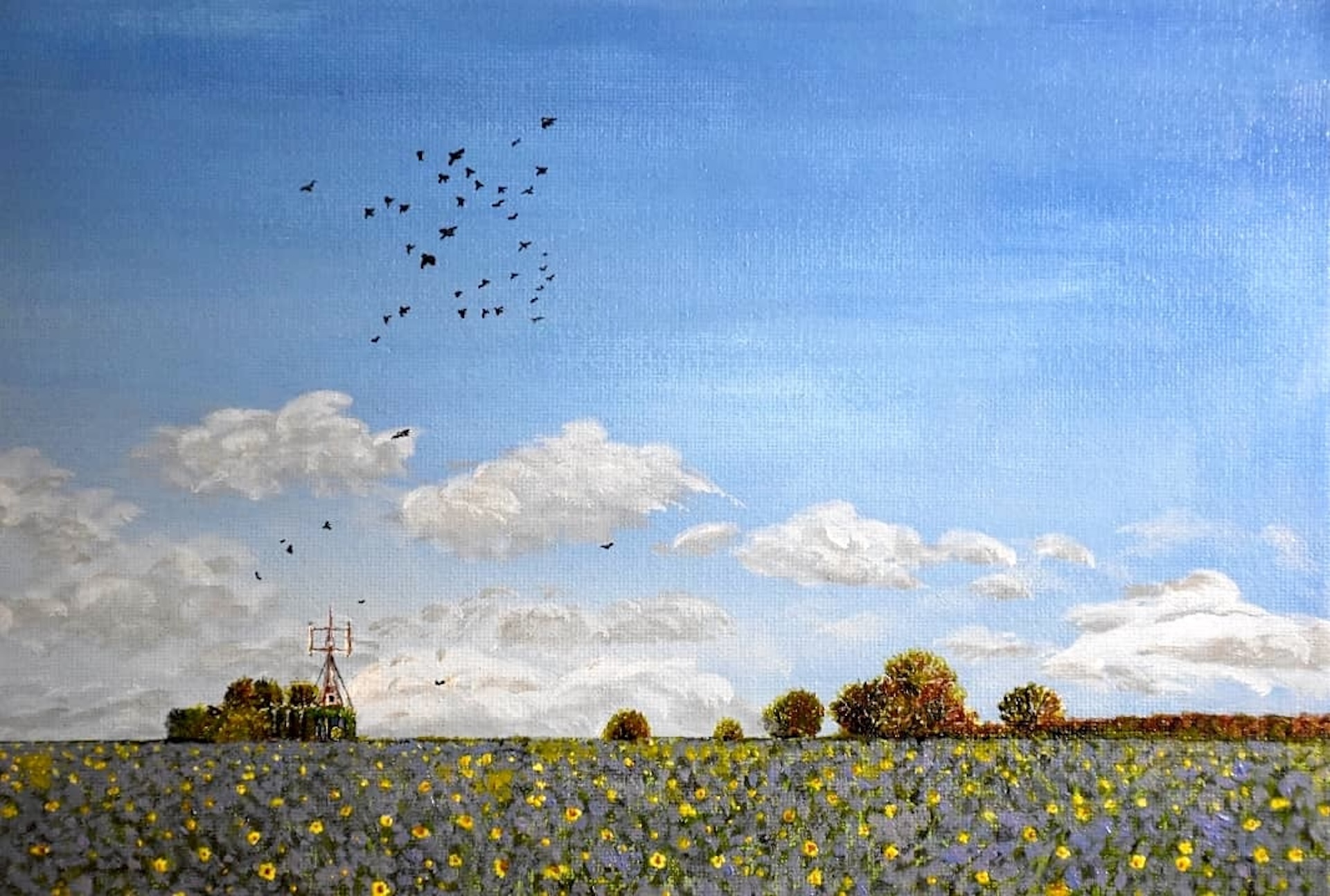 Campo de girasoles en Plouzané, Brest, Francia. Acrílico sobre lienzo.