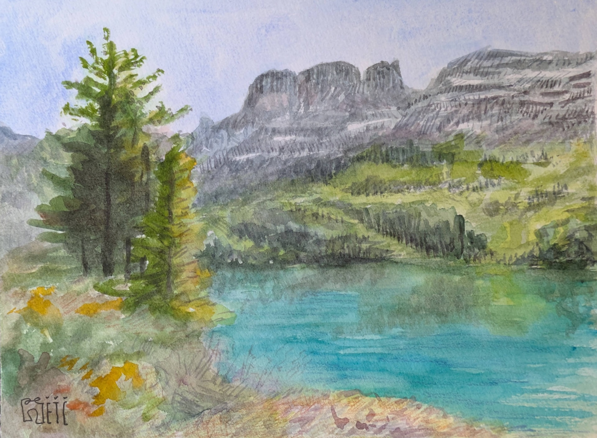 Vista del lago Engstlensee, Suiza. Acuarela sobre papel.